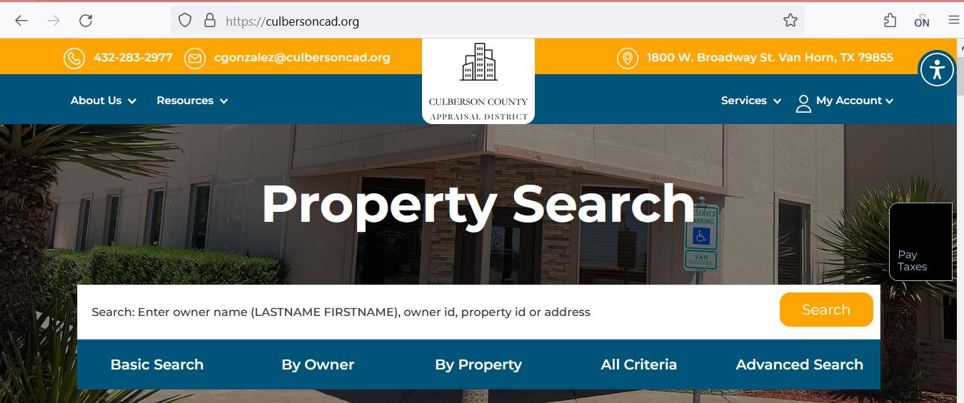 The Culberson County Appraisal District property search is free and easy – good for checking your property value or details quickly.